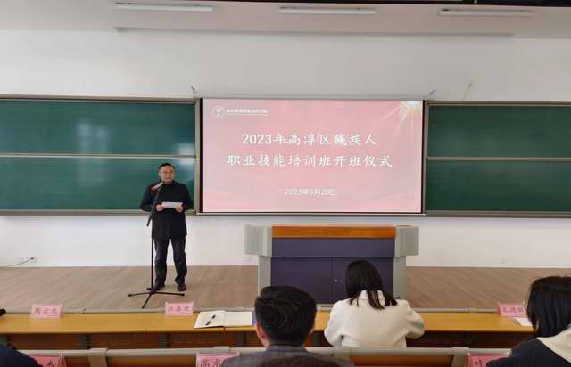 为提升高淳区残疾人的技能水平,推动残疾人事业持续、健康发展。3月20日上午,2023年高淳区残疾人职业技能培训班开班仪式在学院顺利举行。高淳区残联党组书记、理事长王翠香,南京高职园管委会副主任汪春荣,学校党委委员、副院长孔德丽,机械工程系、自动化工程系、信息工程系、人文社科系、培训处等部门负责人,授课教师代表及全体残疾人学员参加了本次开班仪式,仪式由学校继续教育学院副院长兼培训处副处长周云龙主持。