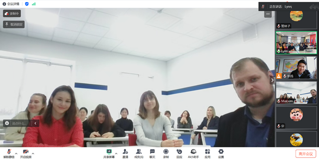 在这个充满奇迹的数字时代,距离不再是障碍,文化交融跨越了千山万水!12月24日,我校选修俄语的学生与国立社会人文大学的学生共同开展了一次别开生面的线上交流课堂。国立社会人文大学主管国际校长助理马克西姆·埃尔绍夫、中国教育国际交流研修学院中俄教育合作办公室副主任张践、我校继续教育学院副院长周云龙、继续教育学院国际交流合作中心主任石琳婕和俄语老师李征参加了此次线上交流课堂,整节课以中文+俄语形式开展。在这次线上交流课堂中,两校学生围绕主题《我们的新年》进行了深入的探讨和交流。