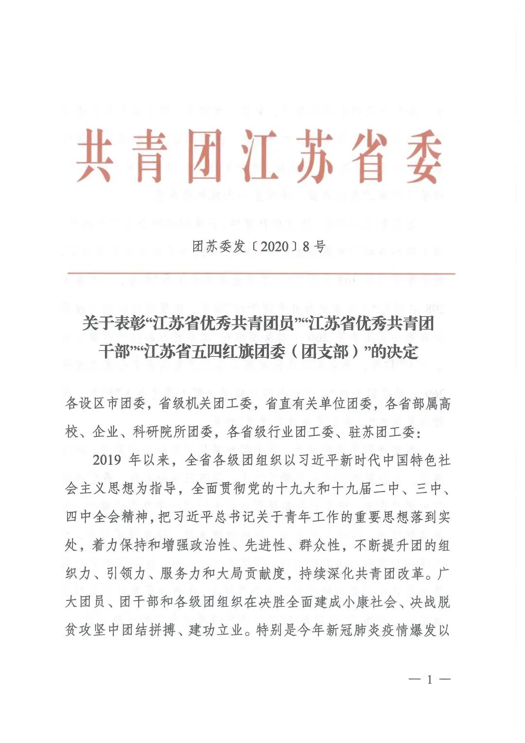 日前,共青团江苏省委下发《关于表彰“江苏省优秀共青团员”“江苏省优秀共青团干部”“江苏省五四红旗团委(团支部)”的决定》(团苏委发﹝2020﹞8号),我系团总支书记杨军老师被评为2019年度“江苏省优秀共青团干部”。