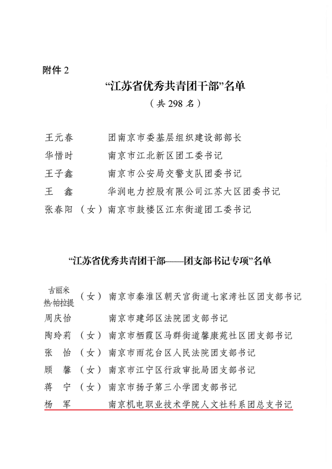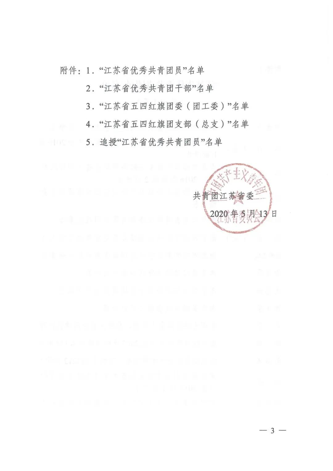 日前,共青团江苏省委下发《关于表彰“江苏省优秀共青团员”“江苏省优秀共青团干部”“江苏省五四红旗团委(团支部)”的决定》(团苏委发﹝2020﹞8号),我系团总支书记杨军老师被评为2019年度“江苏省优秀共青团干部”。