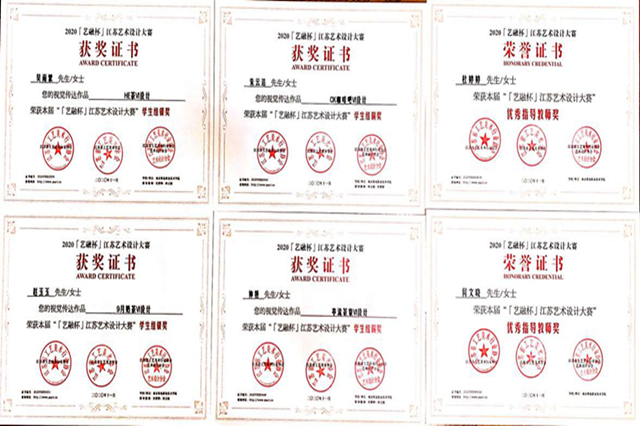 2020年11月,人文社科系学生作品在“艺融杯”江苏艺术设计大赛中,获得银奖两项、铜奖两项的好成绩,设计作品获得了江苏省工艺美术行业协会专家的认可。