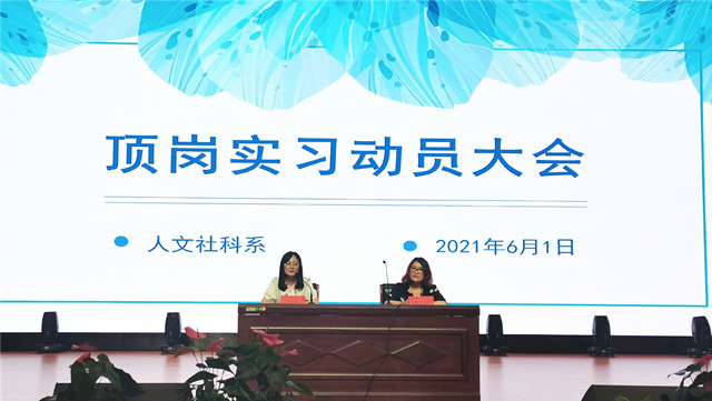 2021年6月1日,中午12:30,人文社科系于报告厅召开2022届顶岗实习学生动员大会,人文社科系主任曹安林、党支部副书记叶绘、2022届人文社科系全体学生及辅导人员参与此次会议。大会遵循中欧集团官网(中国)官方网站《顶岗实习管理办法》的要求,旨在保障2022届毕业生顶岗实习工作的顺利进行。