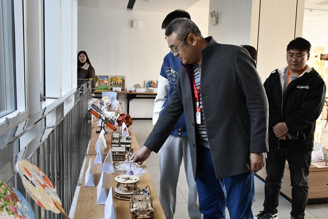 为弘扬创新精神,服务“两聚一高”,进一步活跃校园文化生活,拓展第一课堂,践行美育教育,提高大学生的艺术素养,发挥青年学生在公共艺术方面的创意设计,服务地方发展战略,促进创新创意专业领域内的交流学习,12月14日下午,“人文色彩”主题创客作品展在育德楼二楼成功举办。人文社科系“创客月”活动产生的140余件创客作品和文创产品悉数亮相。
