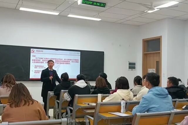 为切实做好入党积极分子的培养教育工作,提高入党积极分子的思想政治素质,充实党员队伍后备军,把好党员“入口关”,结合党史学习教育和党员发展工作实际,12月7日人文社科系党支部第十二期入党积极分子培训班初级班开班仪式暨第一讲在博学楼211开展。人文社科系党支部全体支委、党小组长出席,由2020级各团支部“推优”产生的27名入党积极分子参加开班仪式。