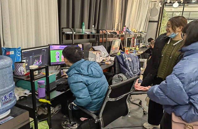 在公司,不仅仅看到了实习的同学,也见到了往届的毕业生们。和学生们聊天,感受到了他们的成长。公司对实习生的表现认可度高,特别是表扬了数媒专业的陈冲同学,该生勤学好问、吃苦耐劳、专业技能提升很快。毕业生们对公司认可度高,企业文化也吸引着他们,是他们长期留下的动力。