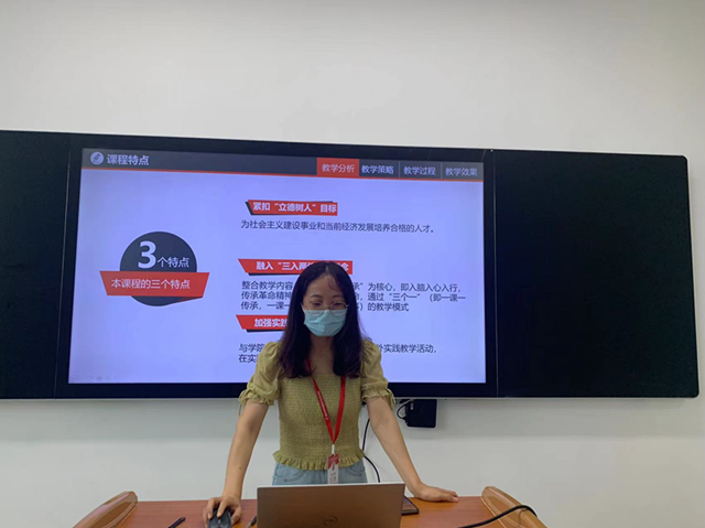 首先,董志鸿、高杉老师作为课程负责人,分别对《毛泽东思想和中国特色社会主义理论体系概论》和《思想道德与法治》两门课程进行汇报。她们围绕着课程定位、课程目标、课程设计与实施、教学效果与特色、存在问题与改进方法等方面进行阐述说明。