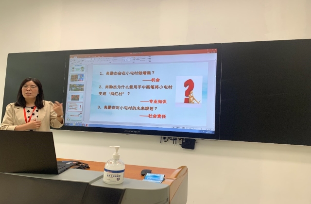 首先,高杉老师围绕学情分析、课程概述、课程意义等几个方面进行了阐述。在绪论导入中,她围绕2019年江苏省广告设计技能大赛金奖《三碗盐》案例展开,阐述新时代大学生如何把握新时代、如何做有理想有本领有担当的时代新人。