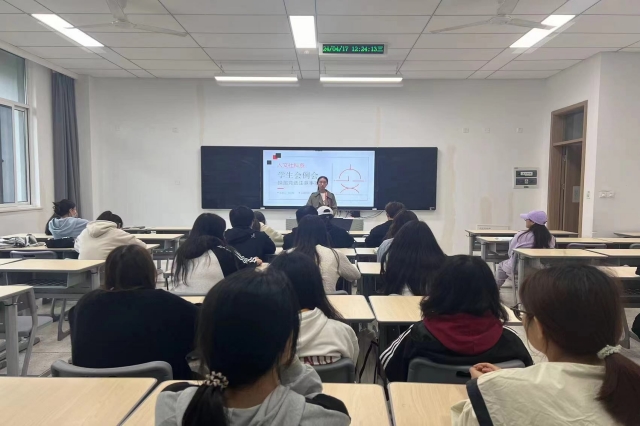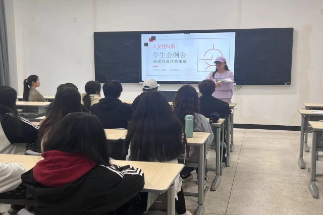 2024417日中午12:00人文社科系学生会在博学楼110召开学生会例会。本次例会由学生会主席杨闪悦主持,学生会指导老师梁娟娟老师及全体学生会成员出席本次例会。