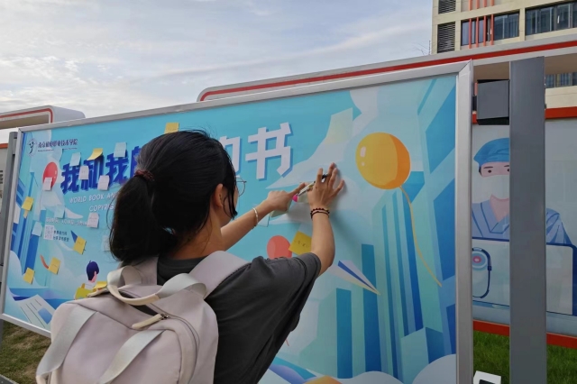 在活动中,同学们兴致昂扬地在便利贴上写下自己心爱的书籍粘贴至展板上,并进群分享自己所写枕边书的感受。小小的便利贴,简单的文字,却是同学们的精神食粮,丰富个人心灵。