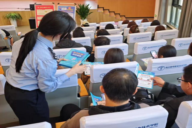 中信银行南京高淳支行的郁其标经理则从银行工作的专业视角出发,聚焦电信网络诈骗中银行卡与账户安全问题,详细介绍保护个人银行信息、识别可疑交易的方法和技巧。他用通俗易懂的语言,将复杂的金融知识讲解得清晰透彻,让同学们掌握了保障自身金融安全的有效手段。