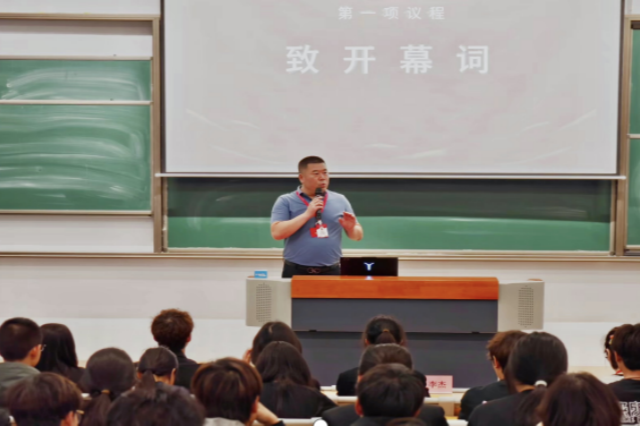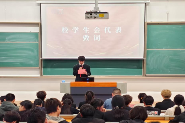 人文社科系团委副书记徐瑞雪宣读贺词,她指出,过去一年人文社科系学生会多方面成果丰硕,充分展现了青年学生的担当与活力。她呼吁全体学生代表以此次大会为契机,继续发扬“团结、奋进、务实、创新”的精神,牢记青春使命,勇担时代责任,贡献更多青春力量。