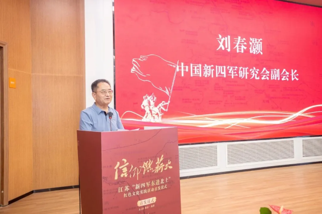 中国新四军研究会副会长刘春灏在致辞中表示,“东进北上”是新四军发展史上一段不可磨灭的辉煌历史,在江苏公布的革命文物名录中,与新四军有关的史迹、旧址等不可移动文物233处,其中国保单位7处、省保单位34处、市县保单位192处。目前,备案的全省革命纪念馆数量46个,与新四军有关的革命纪念馆就有12个。这些丰富的红色资源,是我们深入学习党史和革命历史、汲取丰富精神滋养的生动教材。
