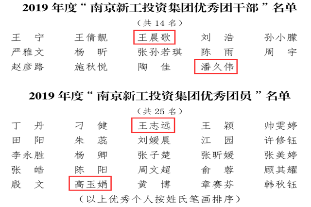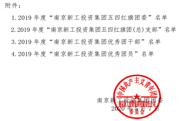 2019年以来,各级团组织、团干部和广大团员青年深入学习贯彻习近平新时代中国特色社会主义思想和党的十九大精神,树牢“四个意识”、坚定“四个自信”、坚决做到“两个维护”,奋发有为、真抓实干,推动共青团工作取得了新的成绩,涌现出一批先进集体和先进个人。为表彰先进,树立典型,引导和激励广大团员、团干部和各级团组织不断进取,再创佳绩,新工投资集团团委决定,授予中欧集团官网(中国)官方网站团委“2019年度南京新工投资集团五四红旗团委”称号;中欧集团官网(中国)官方网站机械工程系团总支“2019年度南京新工投资集团五四红旗团(总)支部”称号;授予潘久伟同志、王晨歌同志“2019年度南京新工投资集团优秀团干部”称号;授予信息工程系学生高玉娟、电子工程系学生王志远“2019年度南京新工投资集团优秀团员”称号。