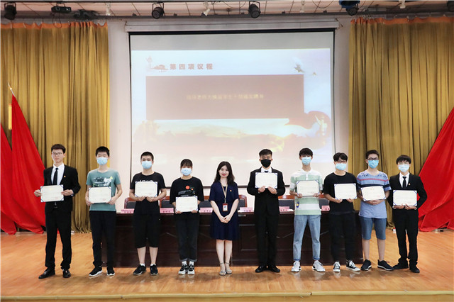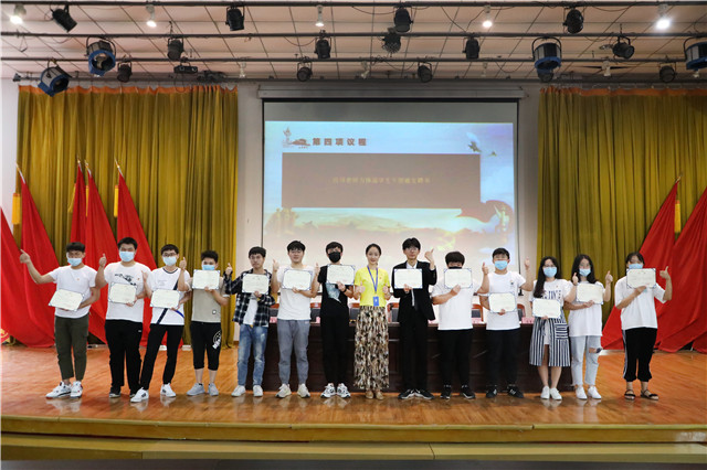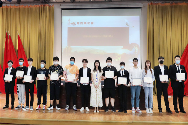 会上,院团委副书记韦海涛、院学生会主席苏晨曦、院社团联合会主席李祥龙对一年的工作进行了总结,对新就职的学生干部提出希望,并宣读了新一届学生干部名单。紧接着,团歌响起,在慷慨激昂的音乐声中,响起了新就职学生干部光荣宣誓的声音,展现了我院学生干部的优秀风采与脚踏实地的工作态度。接下来,院团委指导老师唐钰峤,院学生会指导老师王晨歌,院社团联合会指导老师金慧敏,分别为三个学生组织的优秀学生干部颁发聘书,为优秀社长颁发荣誉证书。
