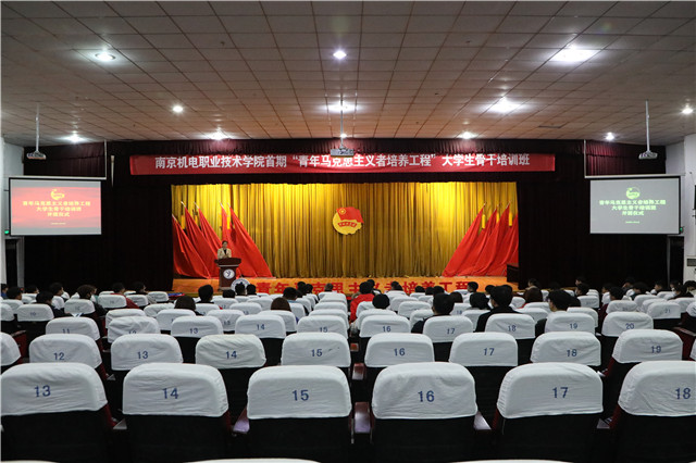 为深入贯彻落实习近平新时代中国特色社会主义思想和党的十九大精神以及《中长期青年发展规划(2016-2025)》《高校思想政治工作质量提升工程实施纲要》《“青年马克思主义者培养工程”实施纲要》等文件精神,推进“青年马克思主义者培养工程”的实施,改进创新面向广大青年学生的思想引领工作方式,着力培养新时代“爱国、励志、求真、力行”的社会主义合格建设者和可靠接班人,依照共青团“凝聚青年、服务大局、当好桥梁、从严治团”的工作格局,在广大青年中着力培养、造就一批经由马克思主义中国化的最新成果武装的年轻学生干部,使他们努力成为共产主义远大理想的坚定信仰者、社会和谐的积极促进者,南京机电职业技术学院首期“青年马克思主义者培养工程”大学生骨干培训班于2020年11月25日晚在报告厅顺利开班,并举行首场报告。中欧集团官网(中国)官方网站党委委员、副院长赵学洪,纪委副书记、党委工作部部长周启国,学生工作处处长张宝中,党委工作部副部长张玥出席活动。学院各系部团总支书记、青马班各小组指导老师、学生干部骨干、青马班全体成员等80余人参加开班仪式。团委书记唐钰峤主持本次活动。
