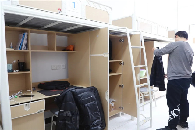 新宿舍 好心情。上床下桌满足了同学们的心愿,宿舍阿姨的贴心服务,更是帮助同学们快速入住自己的新宿舍。新学期 新梦想,新挑战 新希望。同学们迫不及待的开始布置起了“新窝”。拍摄的过程中,隐约可以听见楼里传来的吉他声。闻声寻去,竟发现一位同学收拾累了正坐在新宿舍里弹吉他。断断续续的拨动着琴弦,在暖洋洋的阳光里,竟有一丝悠悠然。