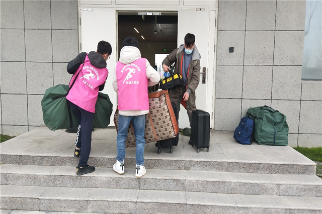 本次返校学生接待工作分为三个接待点,高淳地铁站接待点,团结圩地铁站接待点和校内接待点。三个接待点共同为返校学生前往新校区提供帮助。进校后,由学生志愿者带领,取行李前往宿舍区。学生可以通过扫描二维码查询自己的新宿舍信息。省内学生通过人脸识别后,扫描今日校园二维码,可以进入校园。