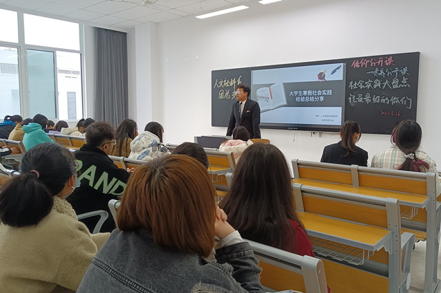 新学期、新环境、新目标、新挑战。为了深入学习习近平新时代中国特色社会主义思想,深化爱国主义精神,促进人文社科系团员青年通过社会实践活动了解社会、认识国情、奉献社会。2021年3月16日下午,人文社科系团总支在高淳新校区博学楼301、303组织全体团员青年开展“社会实践大盘点,记录最好的你们”主题素养公开课。公开课通过线上线下两种方式进行,由人文社科系团总支副书记范灿主持。