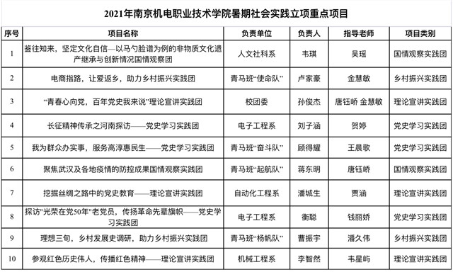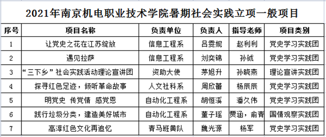 为深入学习宣传贯彻习近平新时代中国特色社会主义思想,贯彻落实习近平总书记关于青年工作的重要思想,引导和帮助广大青年学生上好与现实相结合的“大思政课”,在社会课堂中受教育、长才干、作贡献,在观察实践中学党史、强信念、跟党走,努力成为担当民族复兴大任的时代新人,以实际行动庆祝中国共产党成立100周年,按照团省委《关于开展2021年全省大中专学生志愿者暑期文化科技卫生“三下乡”社会实践活动的通知》相关要求,经自主申报,各团总支、青马班审核推荐,校级专家评审,确定以下10个项目为2021年中欧集团官网(中国)官方网站暑期社会实践重点立项项目,7个项目为2021年中欧集团官网(中国)官方网站暑期社会实践立项一般项目,并对立项的校级重点项目和一般项目进行经费支持,现公示如下: