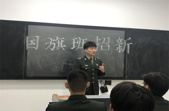 21级新生们根据抽签顺序轮流上台进行自我介绍,各展所长——有人因为家中祖辈三代参军,从小受家庭氛围熏陶,加入国旗班的想法在心中萌芽;有人因为高中便是国旗护卫队中的一员,进入大学也想让这一情怀激荡自己的奋进之路;有人巾帼不让须眉,被军人飒爽的英姿折服后,想进入国旗班奉献自己的一份力量......