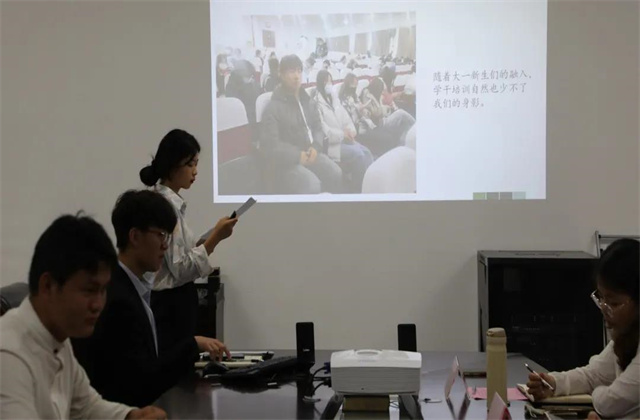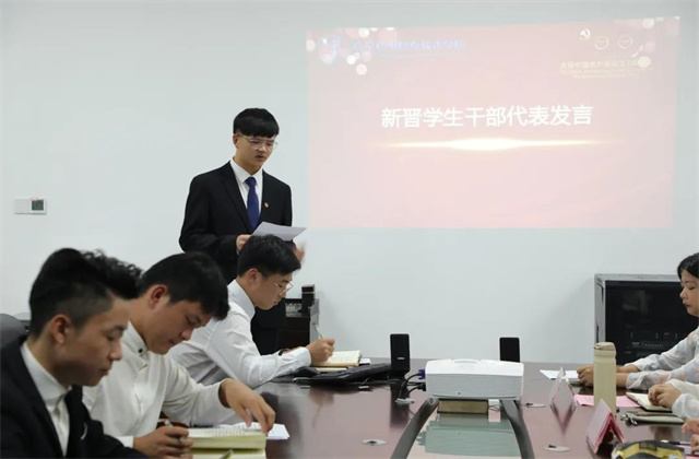 会议过半,不舍离别,续写梦想。薪火相传,生生不息。新一届学生组织负责人代表进行宣讲。