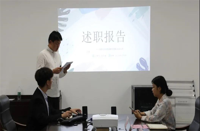 院学生会主席戚彬盛对2020-2021学年院学生会工作进行了简要介绍。在新的学生组织制度的引导下,进一步优化组织结构建设,贯彻为同学服务的宗旨。讲述了本学年活动组织举办的丰硕成果,对本学期新校区搬迁,院学生会全体成员到校即上岗,做出自己的贡献。同时,针对老校区工作漏洞需进行及时整改,进一步改正。院团委副书记孙佳怡上台进行述职报告,他回顾院团委一年工作规划,结合自身工作经验对新一届团委学生干部进行未来展望,他告诉同学们“成绩不会一蹴而就”,要持之以恒,不忘初心。社团联合会主席闫玉玺介绍了社员联合会一年的工作成果以及社团工作介绍,并和同学们进行了心得分享,贯彻“知行合一,自强不息”的校训。心理健康协会负责人薛双双对心理健康协会的一学年工作总结,对于新一届学生干部给予期望和鼓励,将心理健康宣传继续下去。