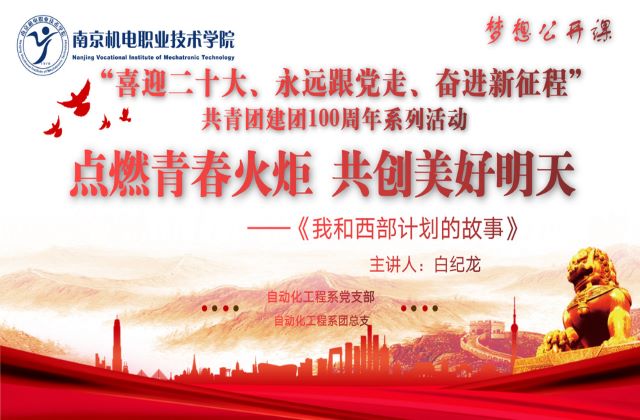 “喜迎二十大、永远跟党走、奋进新征程”,为迎接党的二十大胜利召开和庆祝中国共青团建团100周年,鼓励同学们积极响应国家的号召,中欧集团官网(中国)官方网站自动化工程系党支部联合团总支于4月15日下午在腾讯会议上举行了党日活动暨梦想公开课——我与西部计划的故事,主讲人白纪龙用自身的经历为大家分享了自己与西部计划的故事。