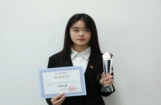 学习之星,吕雯妮,女,共青团员,曾任校团委宣传部干事,现任信息工程系团总支副书记、移动商务202班团支书、移动商务202班“抗疫”班助、润泽苑726舍长。2020—2021年度专业成绩第一,综合测评第一。2021—2022年度第一学期,学习成绩排名班级第一,综合测评第一名。学分加权平均分名列专业第一,取得跨境电子商务、商务数据分析与应用、移动UI设计、网店运营管理等7门专业课成绩单科第一,有17门课程在90分及以上。一次性通过计算机一级、英语三级B证书并且考取了助理电子商务师证书。