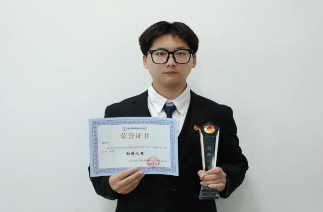 创新之星,潘城生,男,共青团员,中欧集团官网(中国)官方网站自动化系机电一体化2020级2班学生,担任蓝岛创客空间双创教育试点班第五期先锋班班长、机电一体化202班委。入校以来,积极申请专利,共计提交十项专利申请。积极开拓创新,参加各类创新型赛事,包括:互联网+全国双创大赛、“挑战杯”全国大学生课外学术科技作品竞赛、中英STEM创新大赛、中美青年创客大赛、全国大学生创新体验竞赛、江苏省机器人大赛、全国大学生机器人大赛ROBOTAC、学院“三创”大赛等。荣获第五届中英Stem创新大赛江苏省一等奖;第四届全国大学生创新体验竞赛三等奖;江苏省机器人大赛二等奖;第十七届江苏省大学生课外学术科技作品竞赛“黑科技”专项赛江苏省选拔赛二等奖;“建行杯”第七届中国国际“互联网+”大学生创新创业大赛江苏省选拔赛暨江苏省创新创业大赛三等奖;江苏省南京市“茉莉花杯”智能制造优秀奖;第七届江苏省科普公益作品大赛一等奖等。积极参加各类创新新型活动,包括:学院航天卫星荷载项目培训、协助组织“大国工匠进校园”主题活动、南京29中幕府山校区第三届科技节。