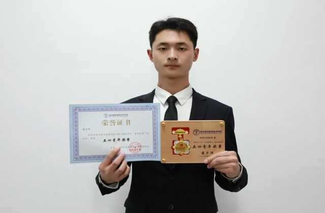 在校期间学习成绩稳居专业前三,申请了一项实用新型专利;荣获2020—2021年度“国家励志奖学金”、“第五届中英STEAM创新大赛江苏选拔赛一等奖”、2022年“南京市优秀共青团员”、2022年院级“五四青年奖章”、2021年院级“三好学生”、2021年院级“优秀共青团干部”、2021年“首届青马班优秀学员”、2021年“天加杯”职业生涯规划大赛一等奖、2021年“冠盛杯”职业生涯规划大赛优胜奖、2022年“管理之星”提名奖、2022年“社会实践优秀团队”、2021年“暑假社会实践优秀个人”、2020—2021年“四星级宿舍”、2020—2021年“国防教育协会中级社员”、2021年玄武区役前集训“优秀教官”、2020年“军训优秀学员”、积极参与疫情防控志愿服务活动,被评为“疫情防控先进个人”。