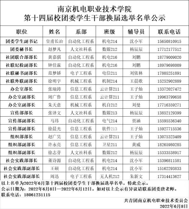 为切实加强学生干部队伍建设,本着“公平、公正、公开”的原则,进行了中欧集团官网(中国)官方网站2022-2023学年学生干部换届选举工作,通过学生自主报名、组织推荐、资格审查、竞选答辩、综合考察等环节,选拔产生了拟任人选,为提高学生干部选拔的透明度,现将拟任人选的名单予以公示。