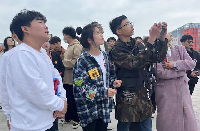 座谈结束后,我校师生带领大家进行全方位的参观,全面地介绍了本校,讨论着学校建筑的不同及亮点。我校无人机社团还带来了一场精彩的无人机表演,他们向大家普及了无人机方面的知识,介绍了无人机的种类及其功能,并且展示了三款不同的无人机。飞行状态不同,功能不同,操作不同,大家都感到十分的惊喜。