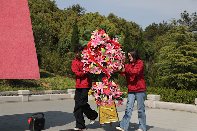 在庄严肃穆的纪念碑前,师生们整齐列队,神色凝重。低沉的哀乐响起,全体人员低头默哀,致以对革命先烈的深切缅怀。紧接着,青马班学员迈着坚毅有力的步伐,向纪念碑敬献花圈,校团委书记孙晓燕整理缎带,饱含着对先烈的无上敬意。