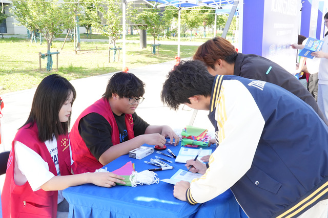 活动期间,身穿红色马甲的志愿者在各主题区默默坚守。他们耐心解答新生疑问,在“启动专业雷达”区协助操作设备,于“勇闯学涯矩阵”关卡引导团队协作;面对人流集中情况,及时分流疏导,确保动线畅通。从清晨布置场地到傍晚清点物资,志愿者们始终以细致服务保障活动顺畅运行。