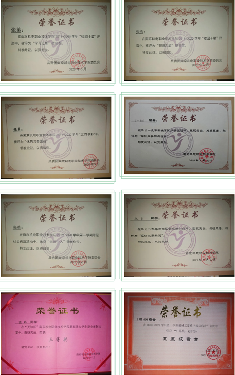 入学以来,荣获第三届全国大学生创新体验竞赛“创新价值”二等奖、2020年第二届全国《机械制图》万人联考江苏省二等奖、中欧集团官网(中国)官方网站第五届职业生涯规划大赛三等奖、2020江苏省机器人大赛F08室外安防巡逻组江苏省二等奖、院级优秀共青团员、军训优秀学员、2019-2020学年“校园十星”之“学习之星”、“管理之星”提名奖。