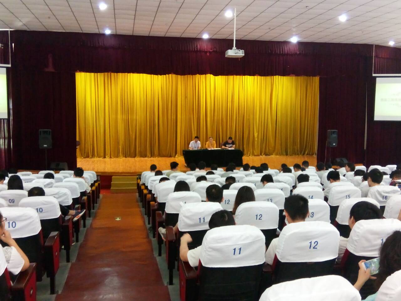 在大会中,首先由学工处副处长李杰就顶岗实习安全作重要讲话,李处长就学生的人身安全、财产安全、交通安全,防盗防诈骗安全等方面做了详细的解读和梳理,特别是小额贷款的安全,提醒同学们谨防小额贷款。15级全体同学认真听取了李处长的讲话。随后,信息工程系胡书记对顶岗实习工作进行详细解读和动员,胡书记从学校的就业政策,学校对自主创业学生的帮扶和鼓励,学校对就业困难学生的帮扶,包括相应的资金、培训,就业领域的指导等方面进行了介绍。胡书记强调顶岗实习是校外教学的延伸,要求同学们要每个月按时填写生涯系统月记,最终会根据月记和单位考评给同学们评算顶岗实习综合分,胡书记希望各位同学认真践行从一个学生到就业者的转变,要担当其自己的相关责任和职责,以踏实的作风和严肃的态度虚心学习,不但要在就业岗位上做好、做精,还要学会处理好人际关系,不断提升就业和职场能力,提高自己的专业技能,遵守规章制度,服从学院和企业的双重管理。