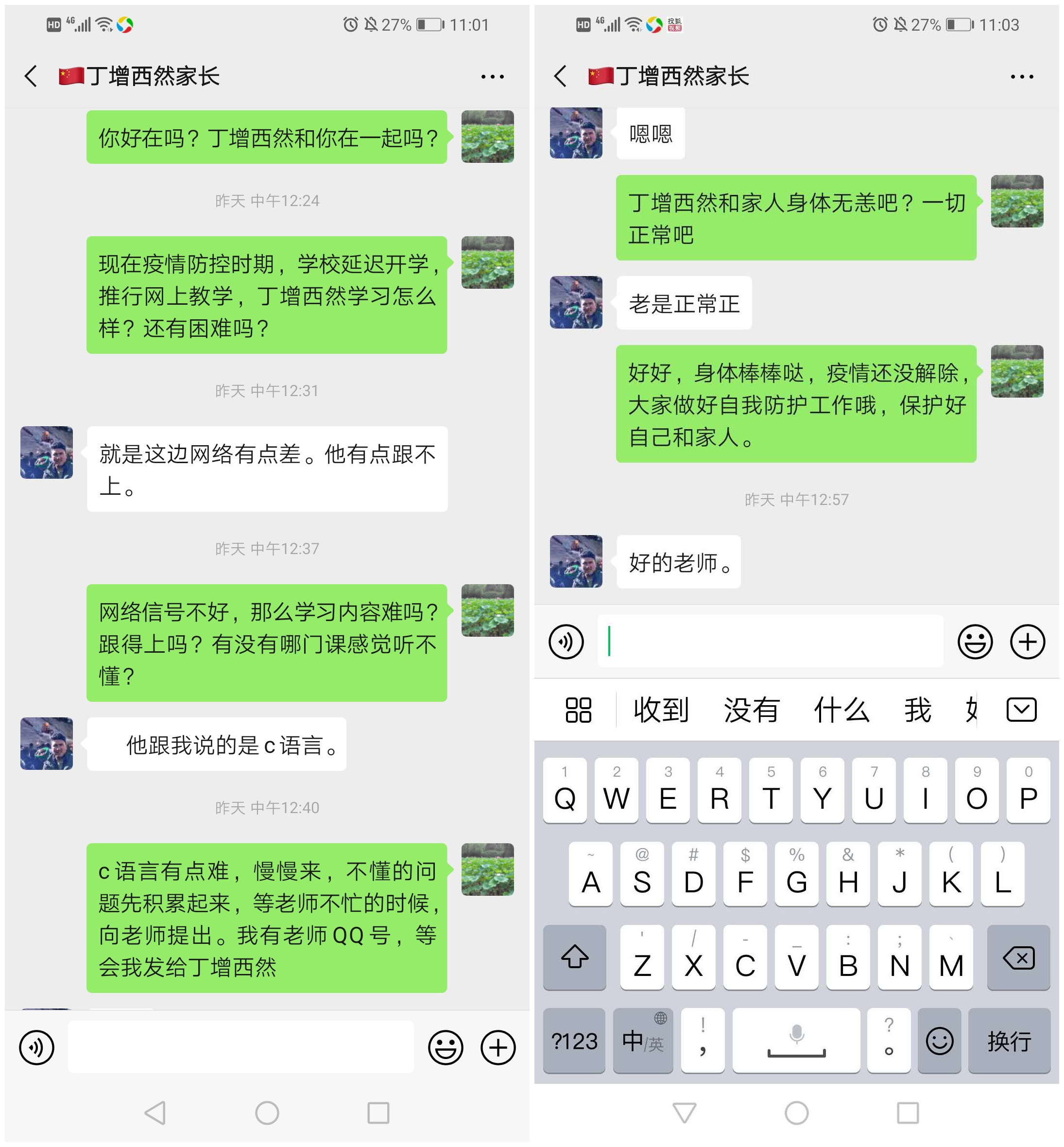 这样的家校共同守护的故事还有很多,还在继续。每一份守护的背后,都是我们铭记于心的 为人师表的责任,兢兢业业的工作,倾尽全部心血。没有冬天不可逾越,没有春天不会来临。我们坚信,此行有你我,就有赢得任何战役的底气和力量。心与心的牵挂,情与情的交流,家校同守护,必能打赢这场疫情防控阻击战!