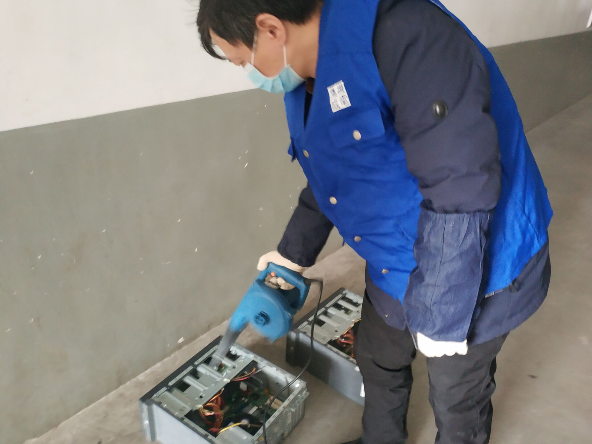 计算机设备由于静电作用极易吸附并聚集大量的灰尘,阻塞散热孔,从而造成内部温度过高,影响设备使用寿命,甚至引发火灾。为了实验计算机设备的正常运行,消除安全隐患,在时隔一年多后,再次组织专项除尘工作。