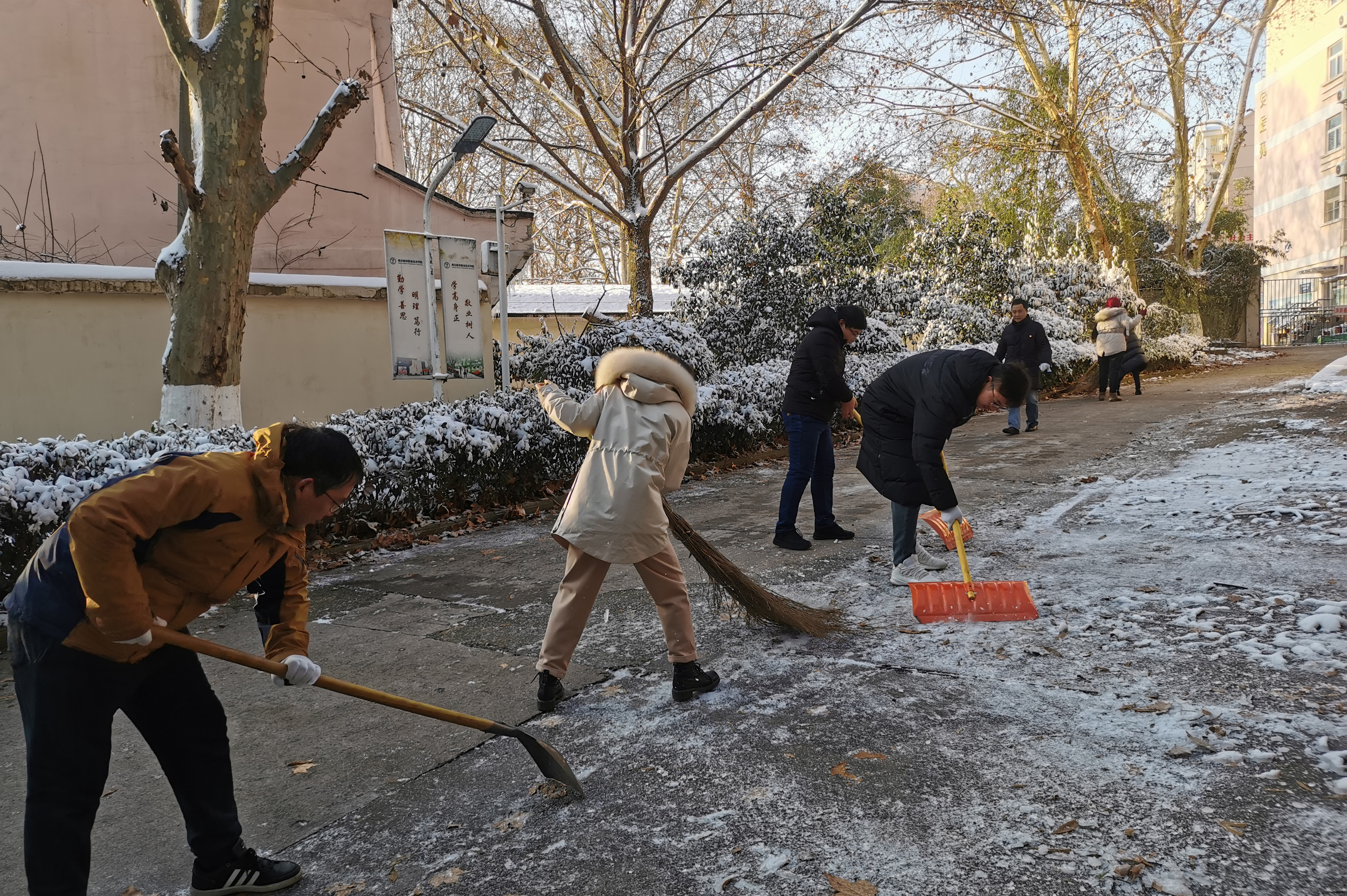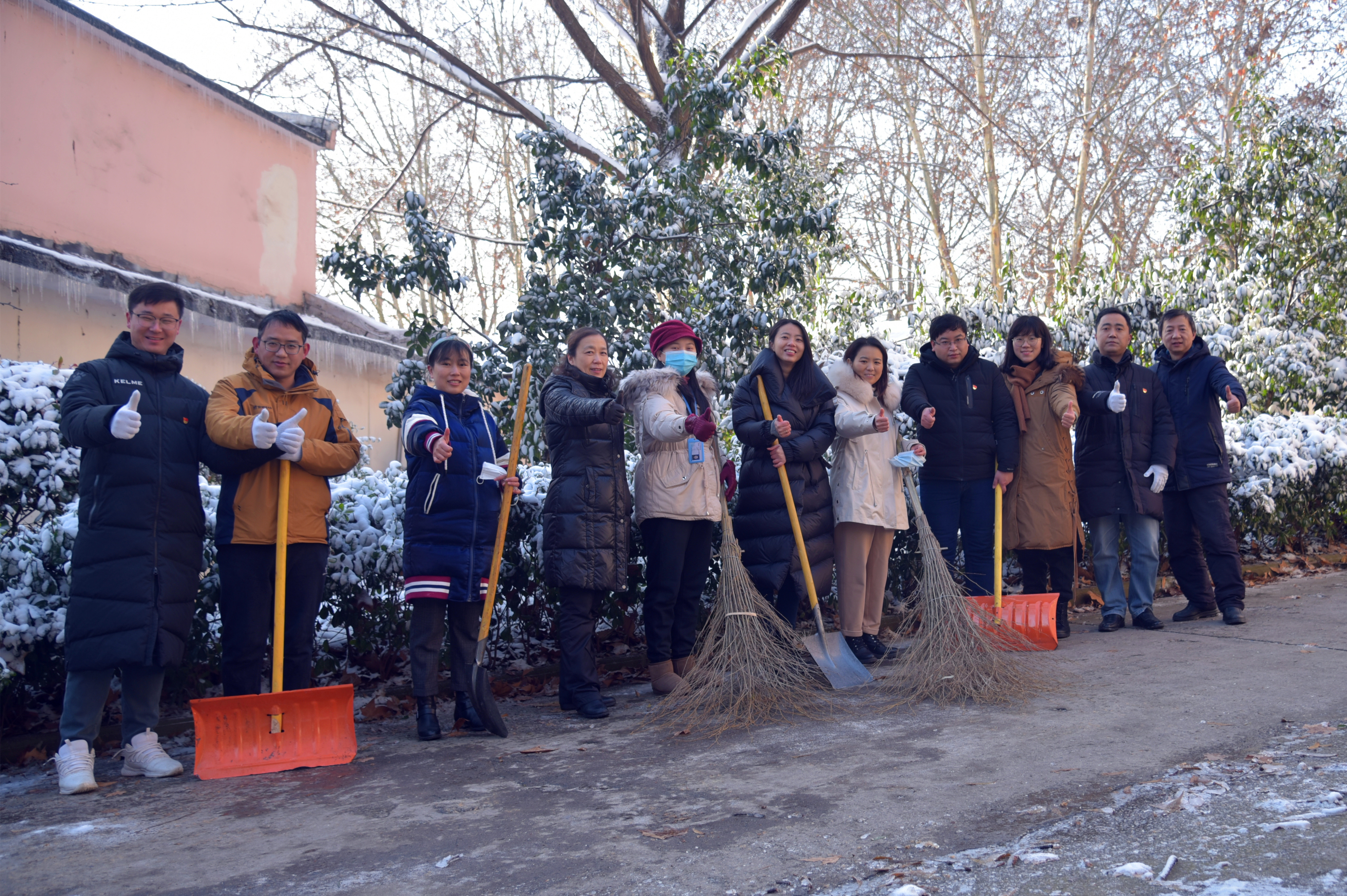 12月30日清晨,一场大雪后,中欧集团官网(中国)官方网站校园内银装素裹,美丽的雪景,让人欢乐的同时也给师生的出行带来诸多不便,虽然前一天晚上后勤等相关单位已经对学院的主干道做了清扫,但是天气寒冷,有一些路面还是冰冻严重,为确保全校师生的在校安全和教育教学的正常进行,信息工程系的教职工早早的来到校园,有秩序地投入到了扫雪除冰的活动中。