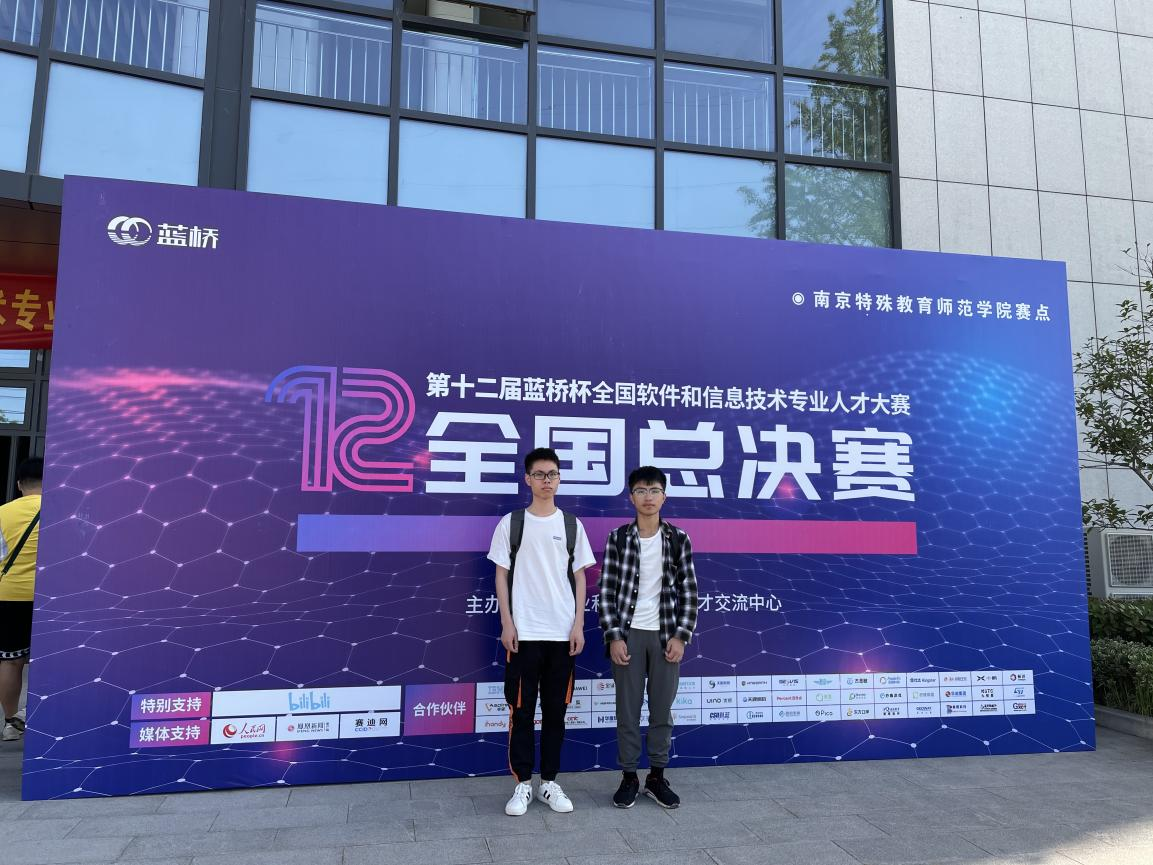 蓝桥杯第十二届省赛选出了一批优秀的算法选手我系软件技术193班的王晶鑫和软件技术192班的章国瑞两名选手成功入选两名同学于6月5日在南京特殊师范学院参加蓝桥杯国赛。