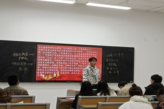 第五名选手是来自云计算211的皇祥,他提出了群众是一切的基础,中国共产党不仅在指导思想上继承和发展了马克思主义群众观,而且在实际工作中坚持“一切为了群众,一切依靠群众,从群众中来,到群众中去”的领导方法和工作方法,并使之成为党在一切工作中都必须始终坚持的根本路线。