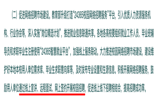 网上签约是以电子合同为载体,在线上达成合约的一种方式。近年来从国家到地方都在推广网上签约,2021年11月,教育部发布的《教育部关于做好2022届全国普通高校毕业生就业创业工作的通知》中明确提出“鼓励用人单位通过线上宣讲、远程面试、网上签约开展校园招聘”。
