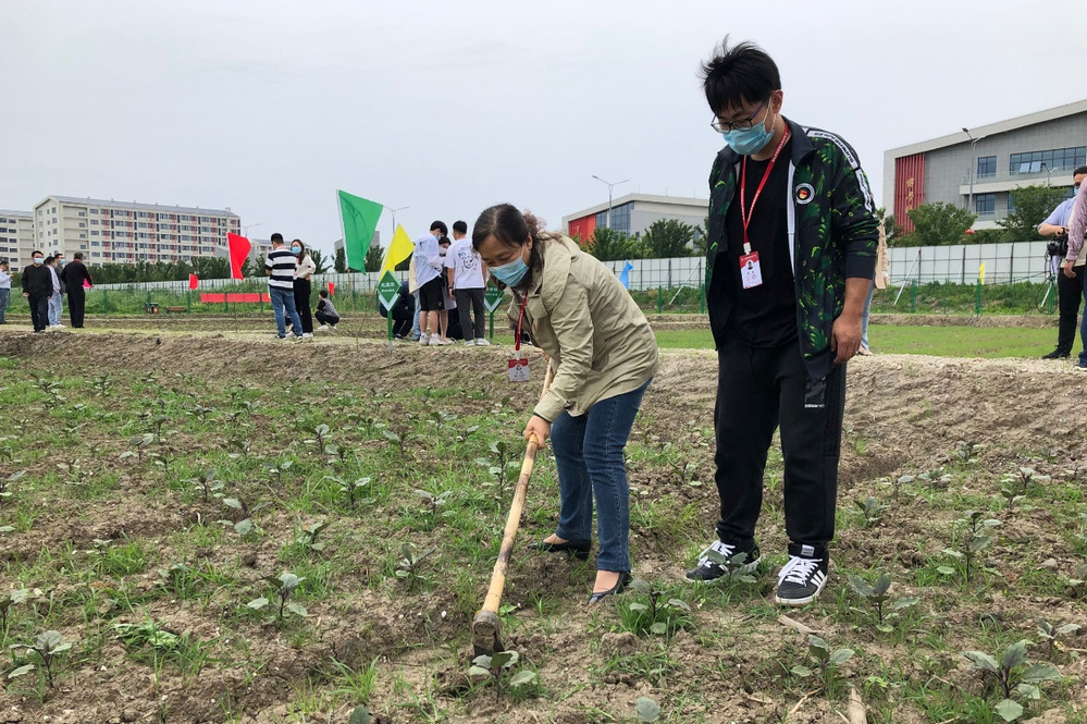 揭牌仪式结束后,信息工程系党支部的老师们参加了劳动实践活动,实践基地的蔬菜园里,前期已经播种下了茄子、黄瓜等蔬菜的种子,一眼看去已经初泛青绿,长势喜人,但也夹杂着一些野草,一声令下,同志们干劲十足,撸起袖子下地干活,除草的除草、翻地的翻地,活动现场呈现出热火朝天的劳动景象。