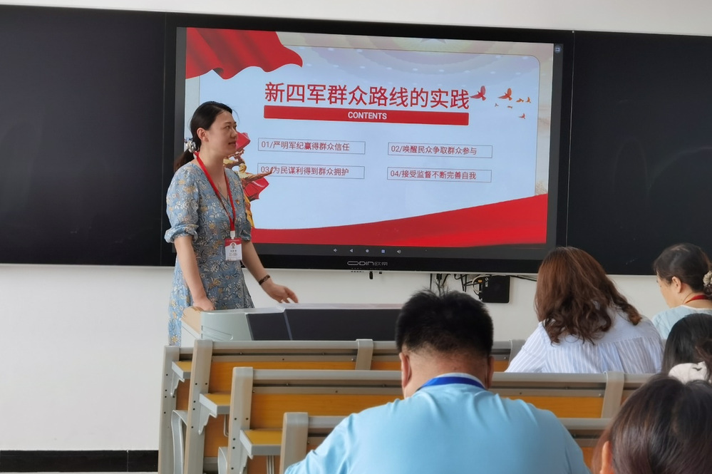 杨老师从新四军的群众路线概述、新四军群众路线的必要性、新四军群众路线的实践三个方面讲述广大新四军指战员与当地群众鱼水情深、同甘共苦,军民间建立了坚如磐石的情谊。