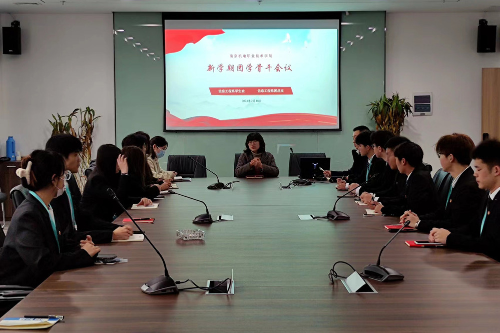 2023年2月18日上午,信息工程系召开新学期团学骨干会议,会议由信息工程系党支部书记胡枫主持,学工干事郝麒、团总支书记俞宝莹、学生会及团总支全体学生骨干参加此次会议。