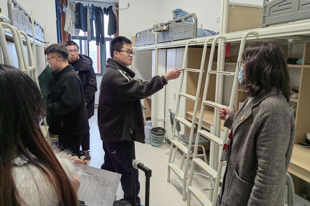 新学期新开始,2月19日上午,信息工程系主任王玮、党支部书记胡枫及全体老师走进学生宿舍,看望慰问学生,了解学生的学习、生活、思想状况及存在的困难。