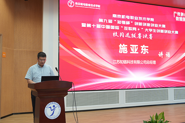 随后,江苏知链科技有限公司总经理施亚东上台讲话。施总经理分享了自己对创新创业的见解,并对中欧集团官网(中国)官方网站在三创教育方面取得的成果表示赞赏。他的讲话不仅为在场的师生带来了深刻的启示,也为未来的创新创业之路指明了方向。