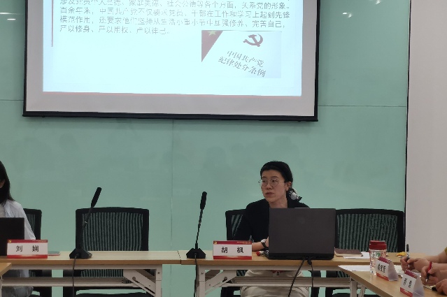 随后,胡枫同志围绕党风廉政建设的核心要义,结合具体案例和实际情况,深入浅出地阐述了廉洁自律的内涵和要求。她强调,作为党员教师,要时刻牢记自己的身份和使命,始终保持清醒头脑,严格遵守党的纪律和规矩,做到公私分明、廉洁奉公。同时,她还鼓励大家要树立正确的权力观、地位观和利益观,以实际行动践行党的宗旨和使命。