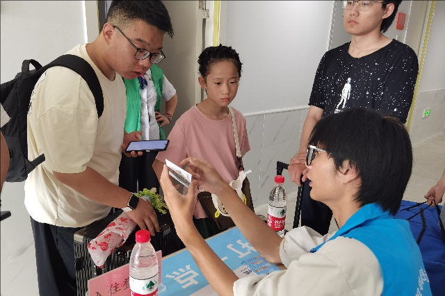 报到现场秩序井然,各个环节有条不紊地进行。新生们在学生志愿者的的指引下,依次完成了资格审查、信息录入、资料收取等手续。报到现场还举办了“航天主题教育展”,以其丰富的内容和独特的展示形式吸引了众多新生和家长的目光,大家都看得津津有味,沉浸在航天知识的海洋中。