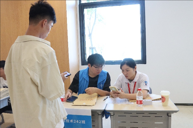 再看报到点,老师们正襟危坐,以严谨认真的态度迎接新生的到来。他们的目光中充满了关爱和期待,每一个微笑、每一次解答,都传递着学校对新生的重视和欢迎。他们耐心地为新生办理着各种手续,确保每一个环节都准确无误,让新生们能够顺利地开启他们的大学生活。